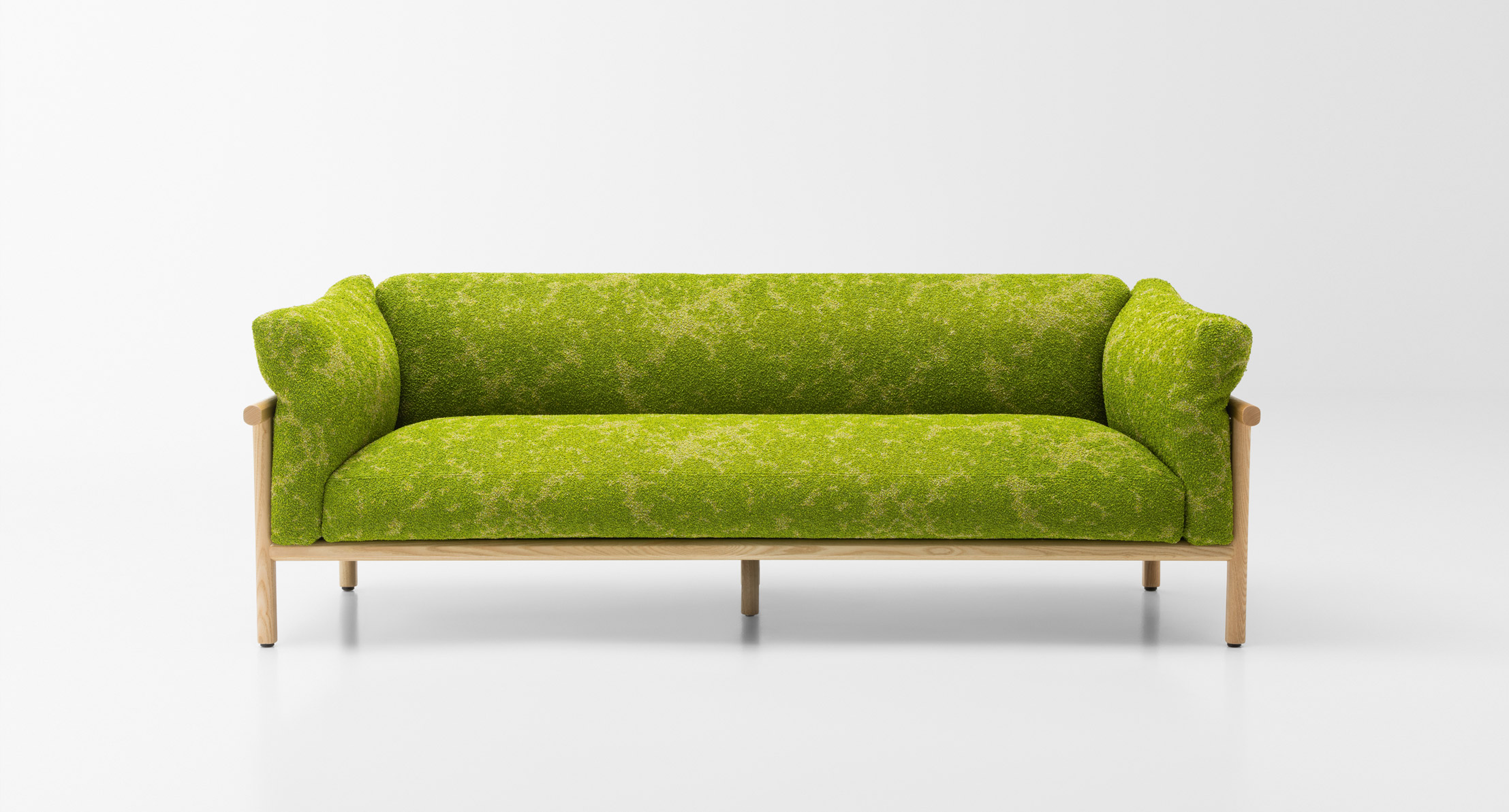 Imbottitura cuscini di seduta, schienale e braccioli: fibra di poliestere riciclata e biodegradabile, inserto in poliuretano indeformabile, fodera fissa in poliestere idrorepellente.