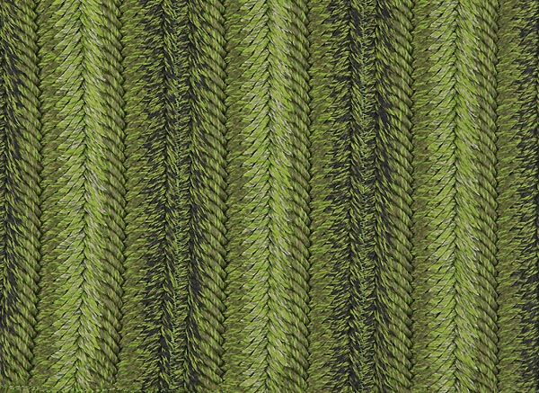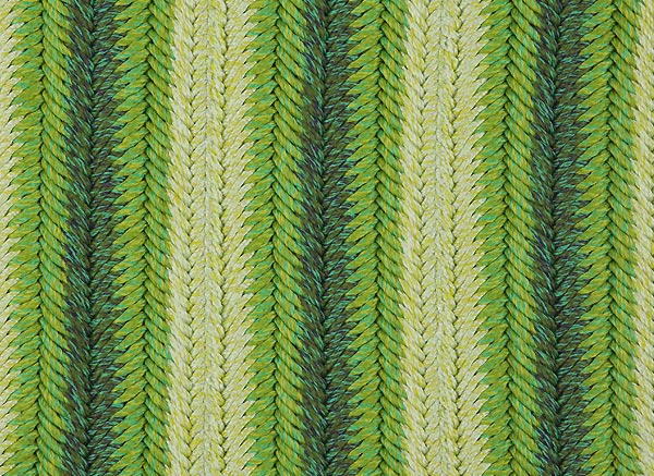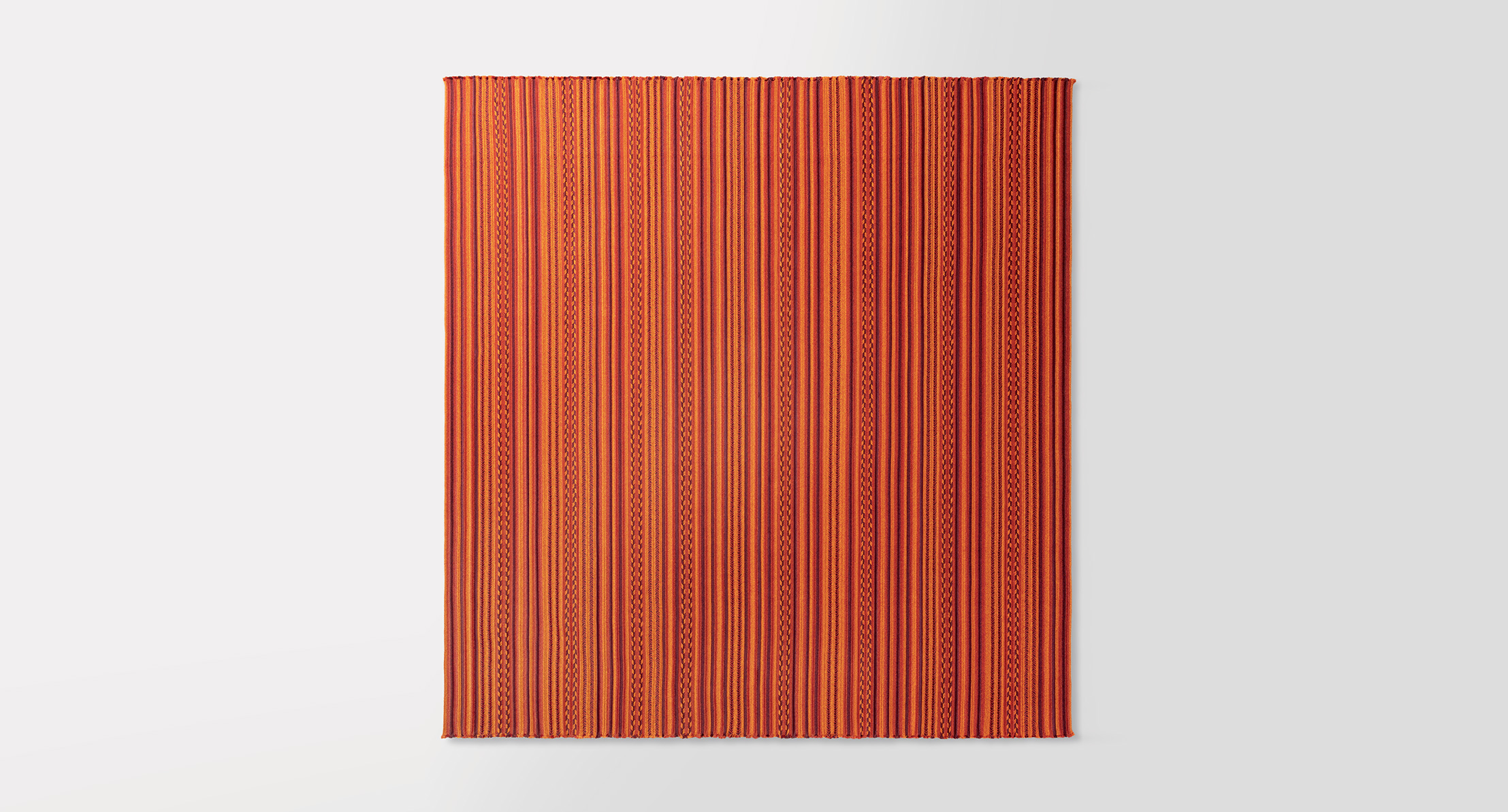 Le trecce utilizzate sono tutte dello stesso mélange di colore, ma propongono intrecci differenti, ripetuti a formare la superficie del tappeto secondo uno schema prestabilito.