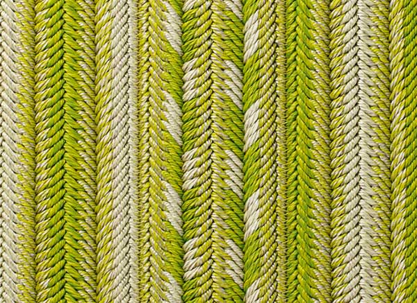 Navajo è un tappeto modulare per esterni e interni realizzato dalla unione di trecce cucite in senso longitudinale.