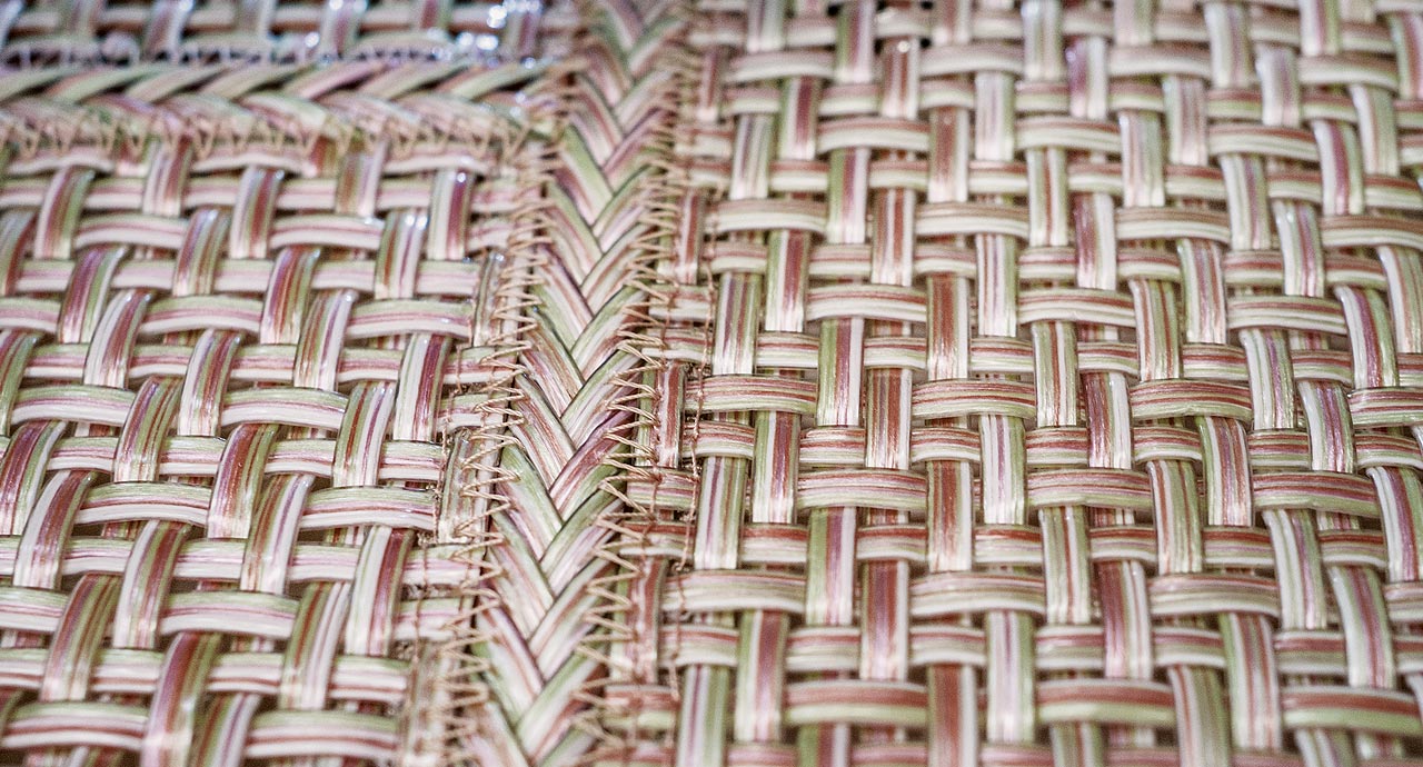 Le strisce sono unite in senso longitudinale con una cucitura a punto Zigzag; altre cuciture perpendicolari a queste, anch’esse eseguite a punto Zigzag e posizionate in sequenza alternata secondo uno schema prestabilito, ne decorano la superficie.