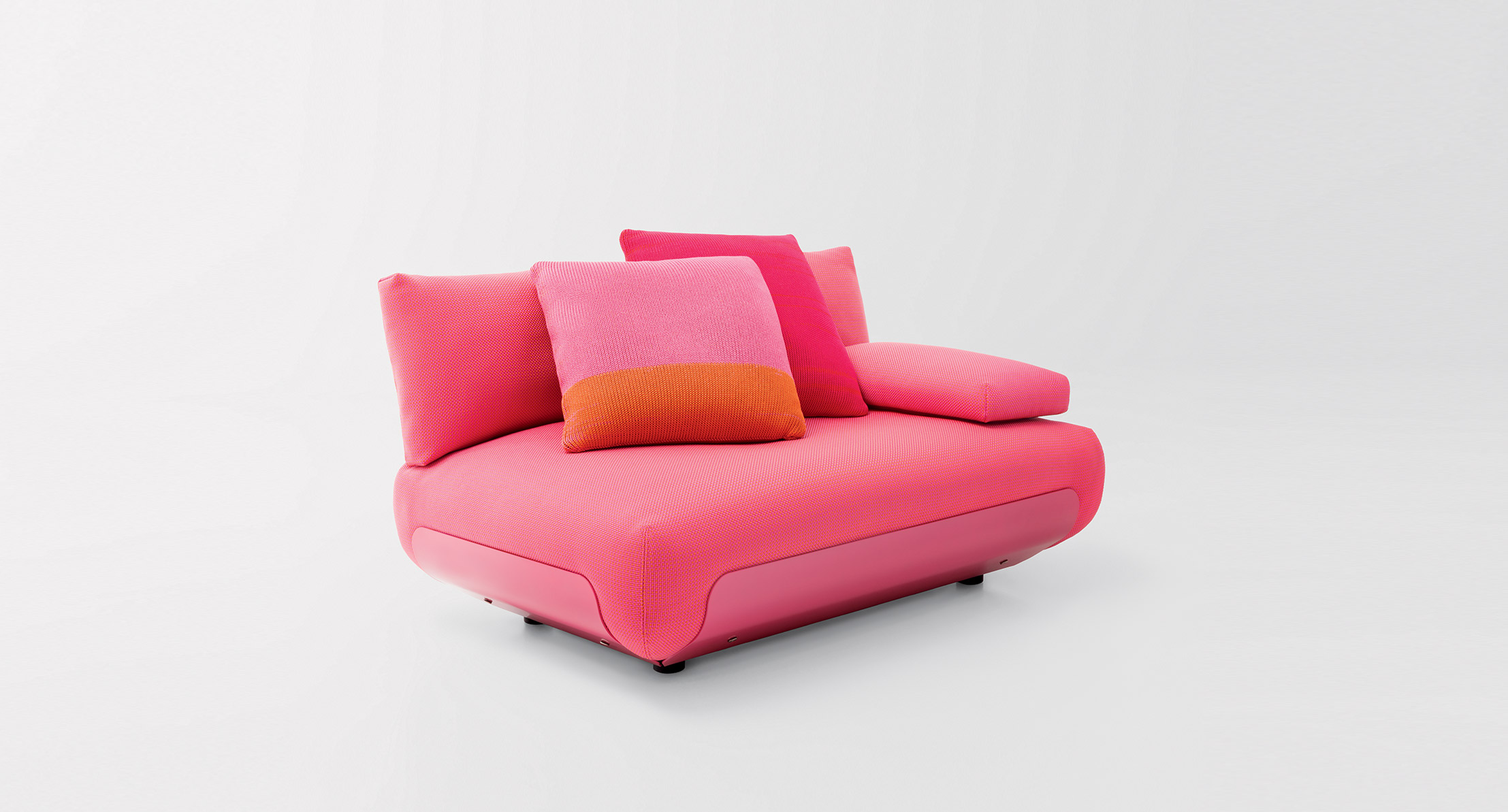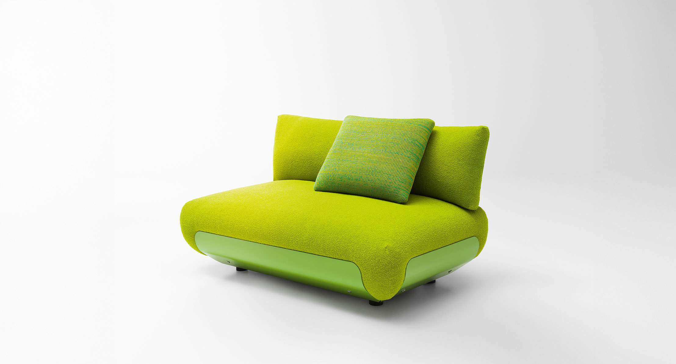 Serie composta da poltrona, elemento centrale, terminali con bracciolo e pouf.