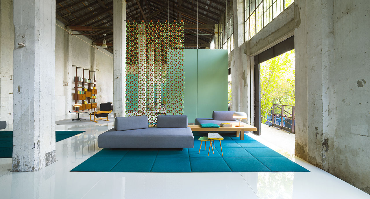 Serie composta da sedute di ampie dimensioni che possono essere completate da schienali e schienali angolari posizionabili liberamente.