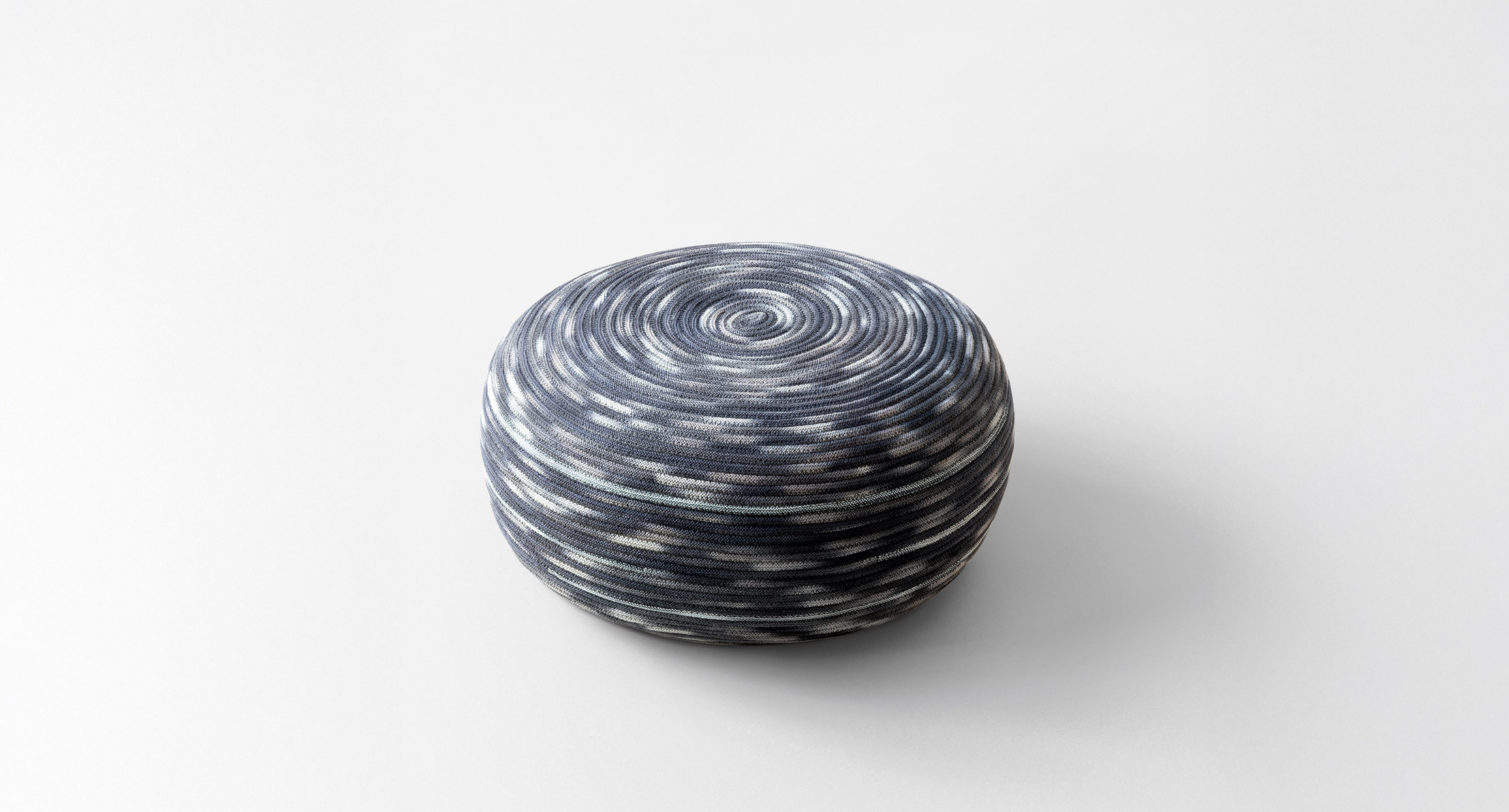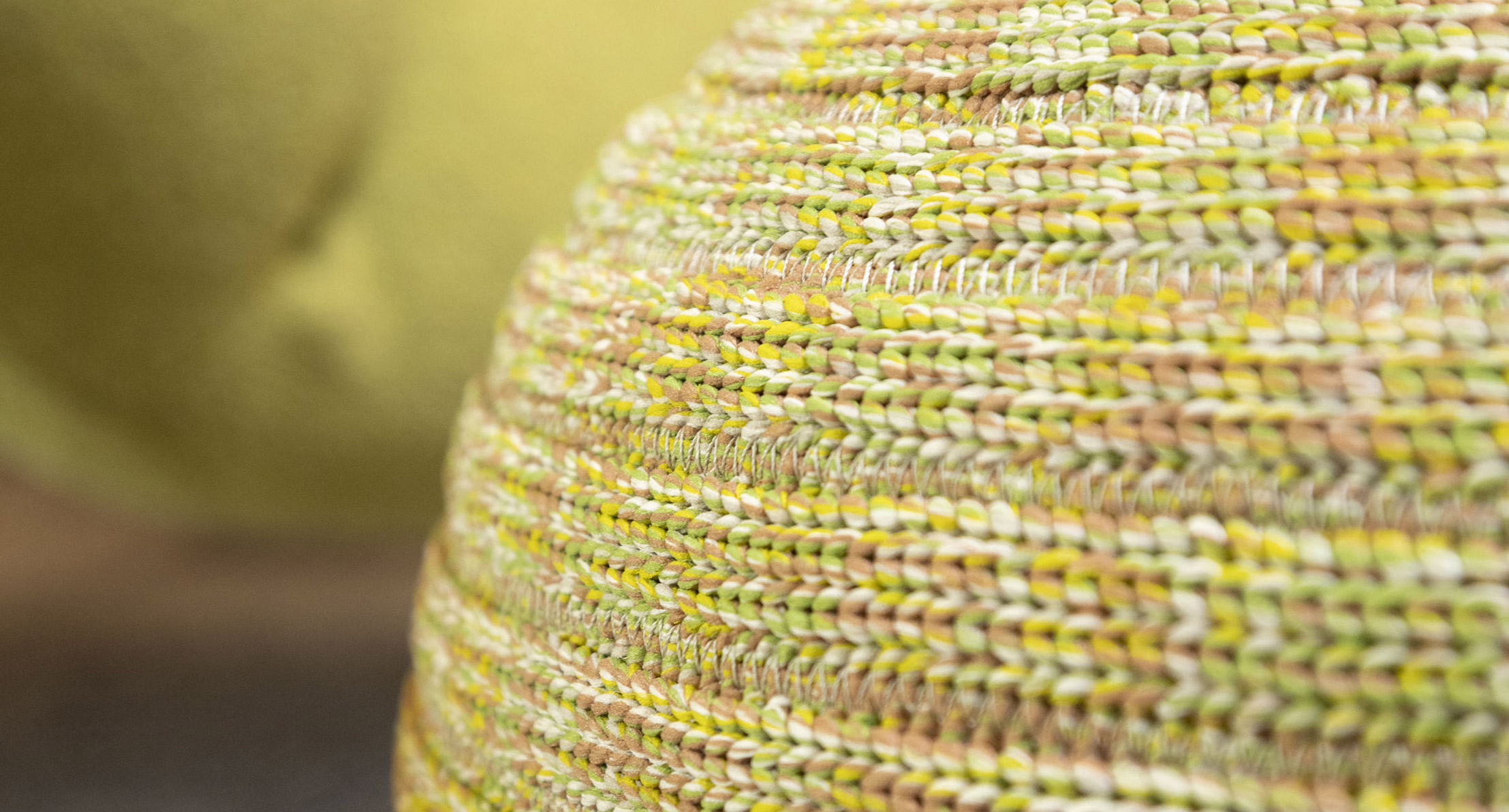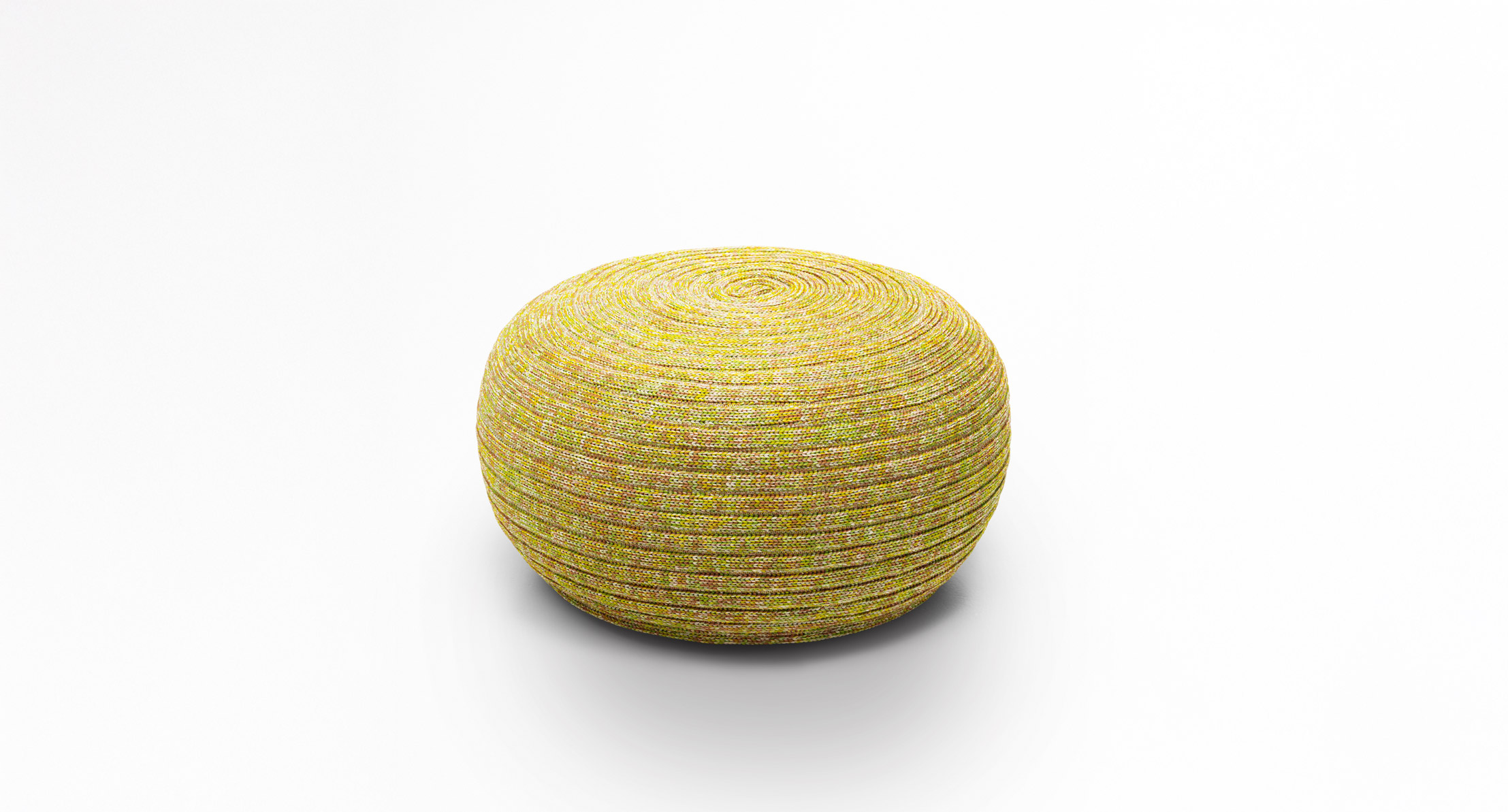 Serie di pouf con rivestimento in maglia tubolare o in corda.