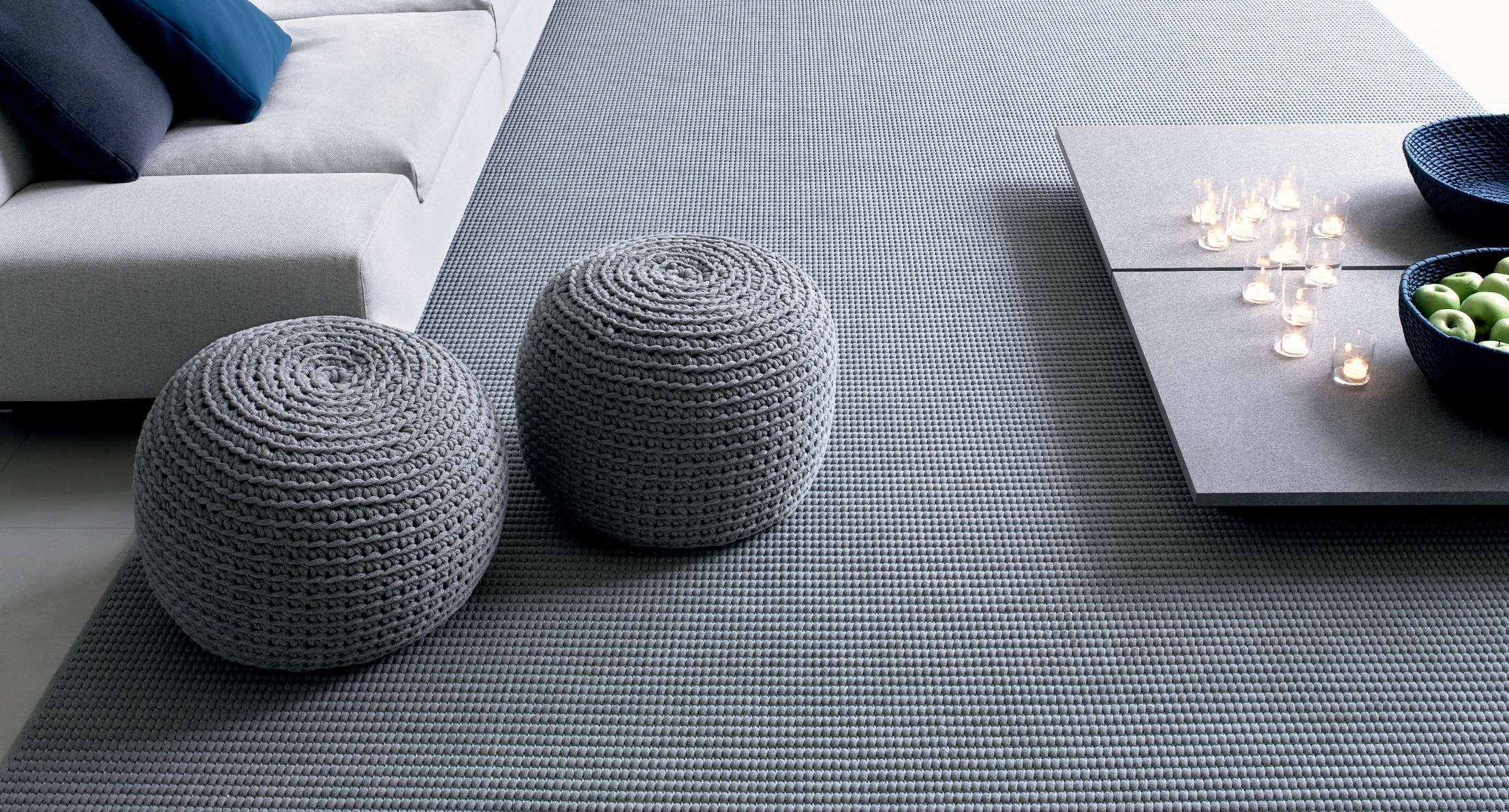 Rivestimento: sfoderabile (per i pouf), fisso (per il cuscino), realizzato a mano all’uncinetto con una corda in lana (Lana Picot).