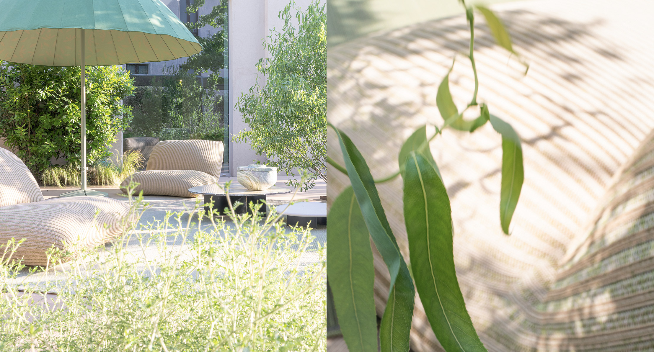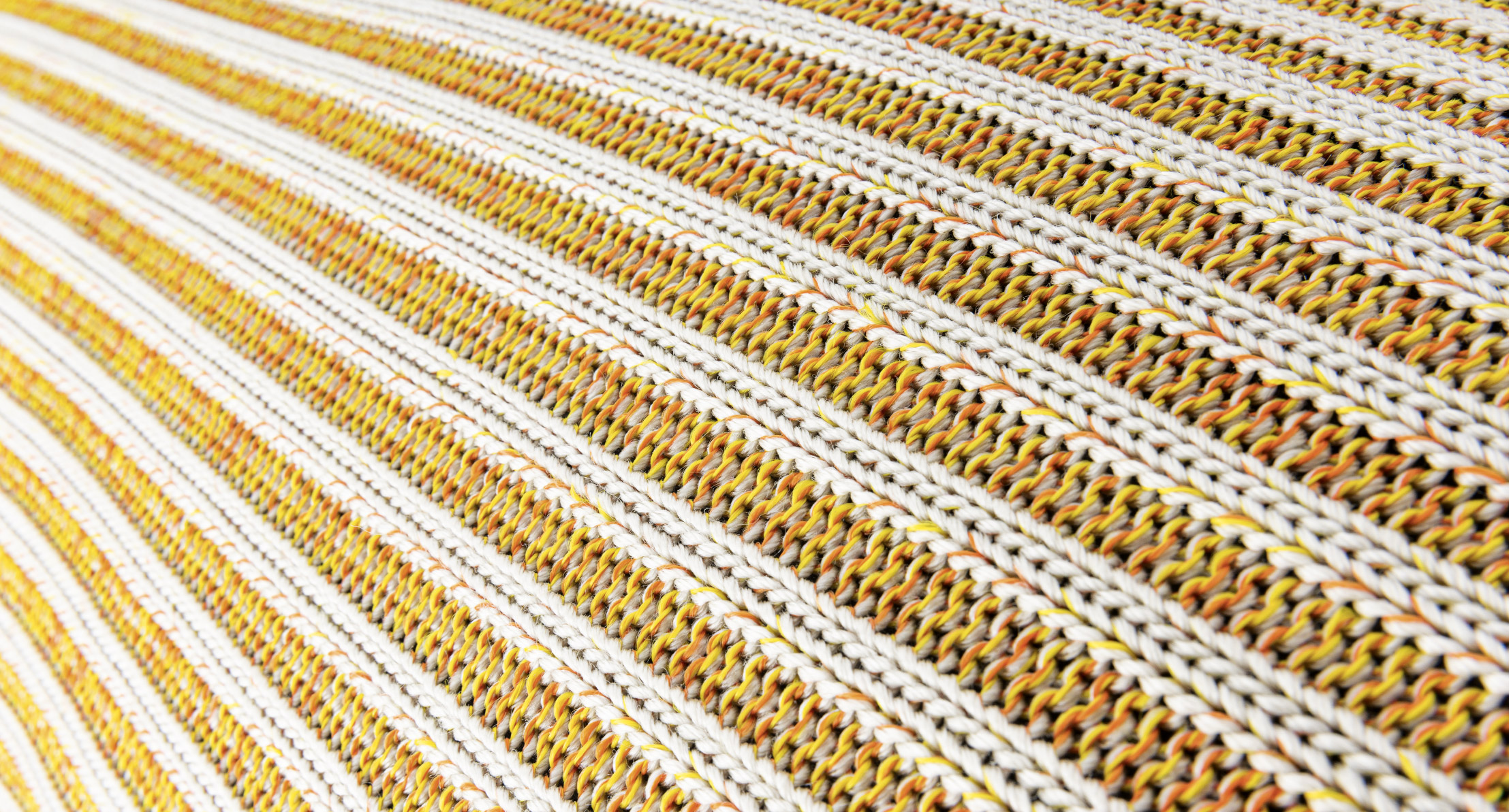 La maglia Costa Inglese realizzata a due colori è un’esclusiva Paola Lenti.