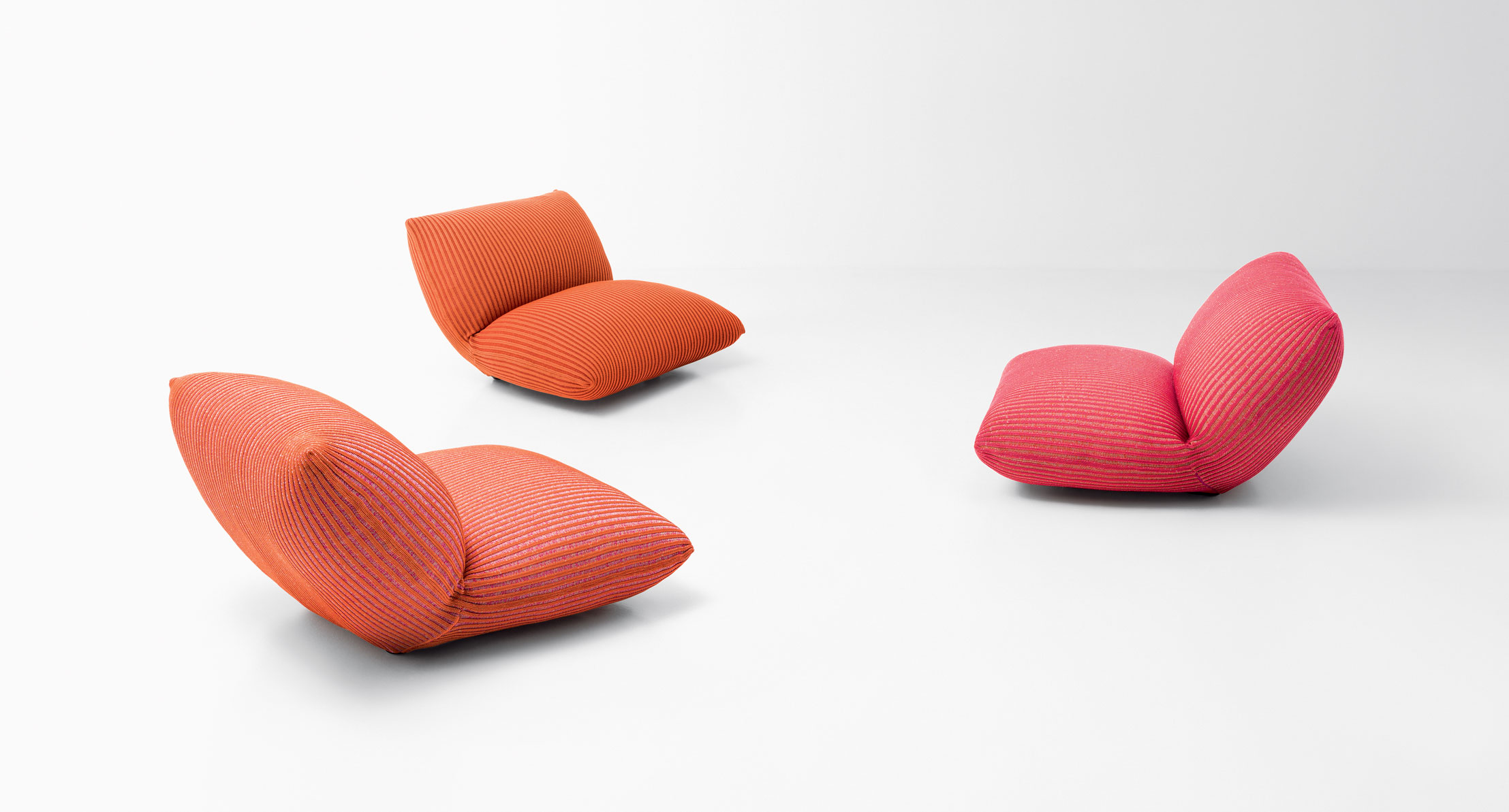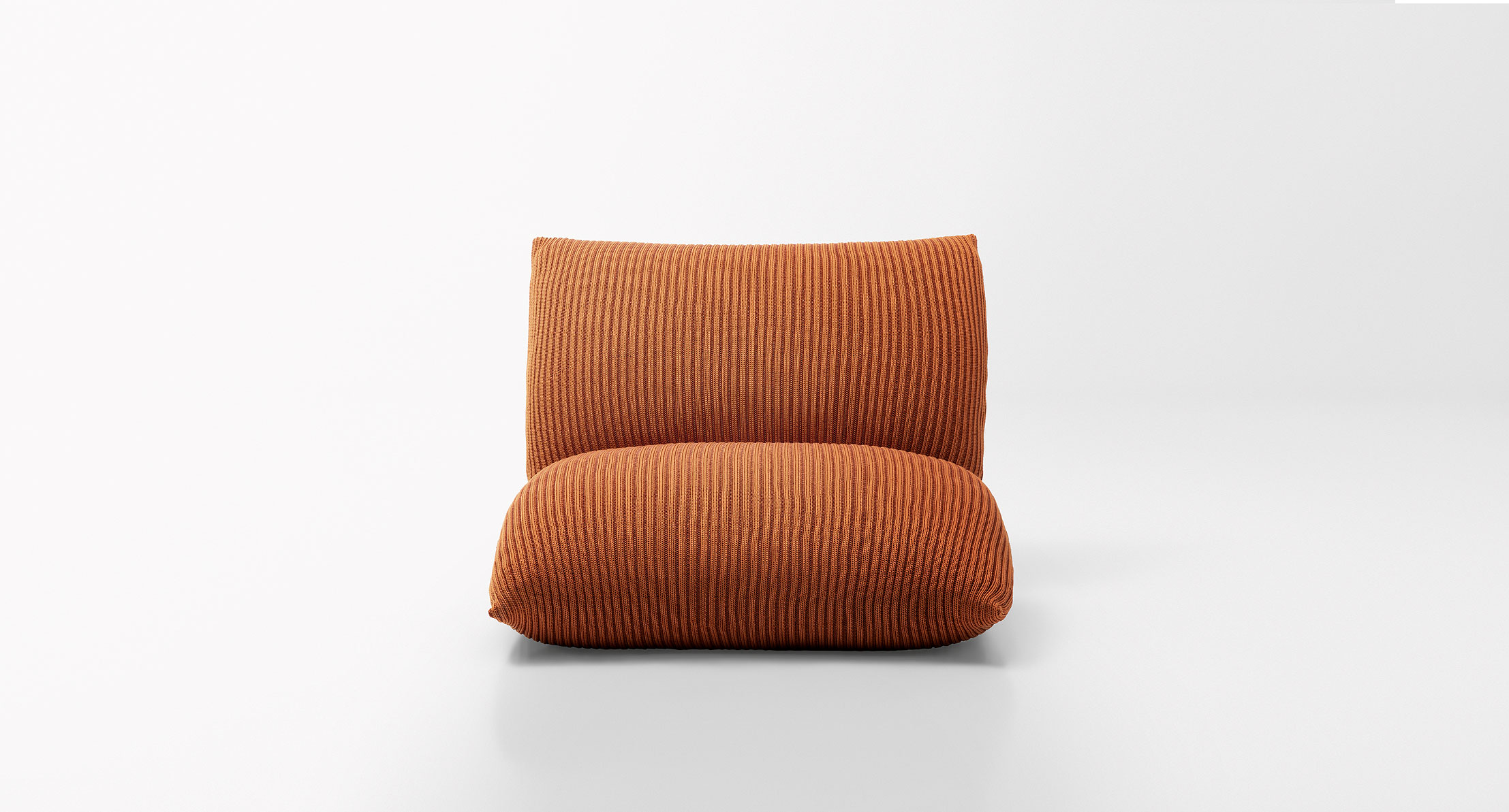 Poltrona costituita da un cuscino di seduta e schienale rivestito in tessuto.