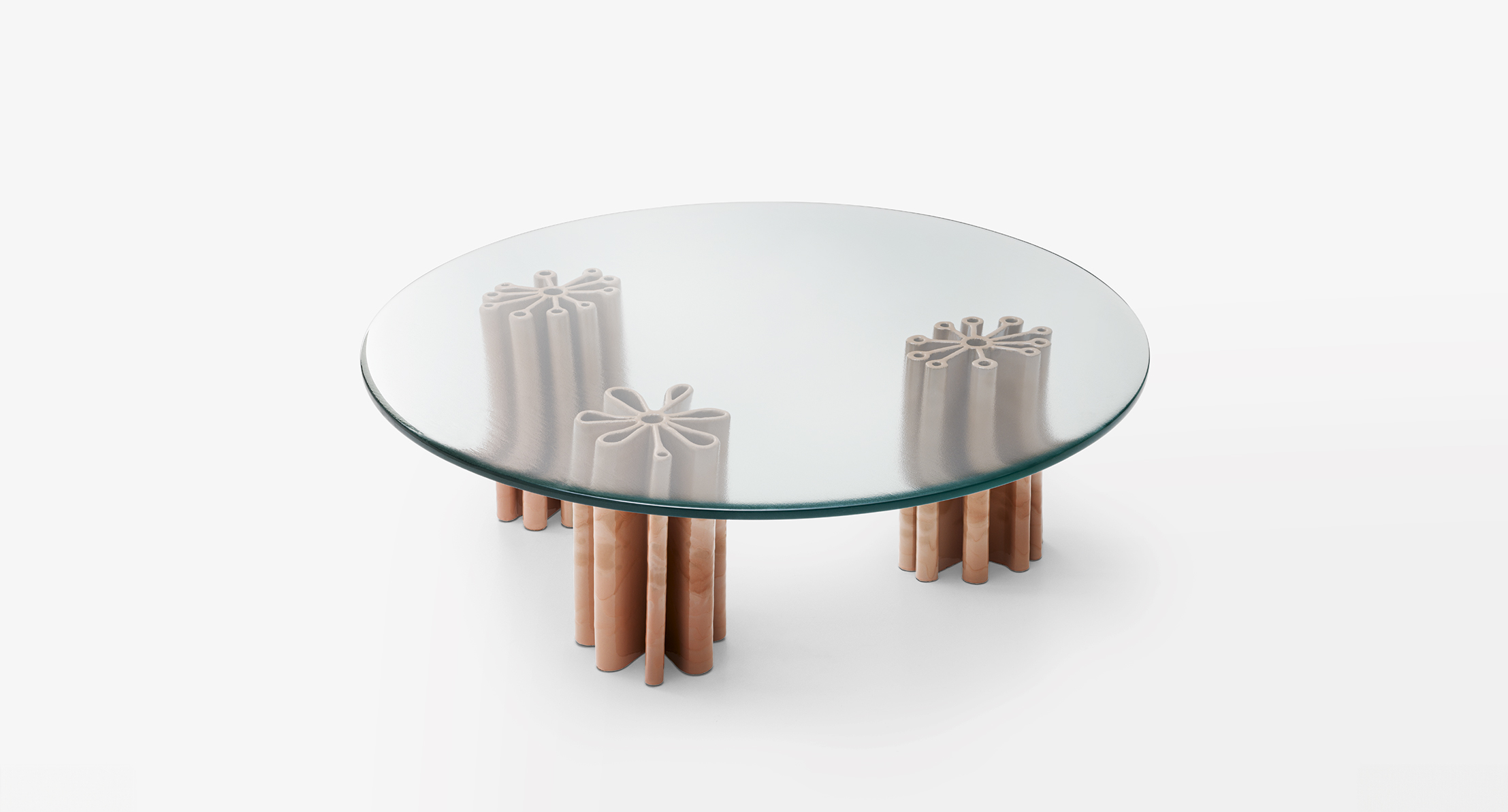 Gli elementi che compongono la base di Primula sono realizzati e decorati a mano con colori esclusivi da Nicolò Morales e sono posizionati secondo uno schema prestabilito.