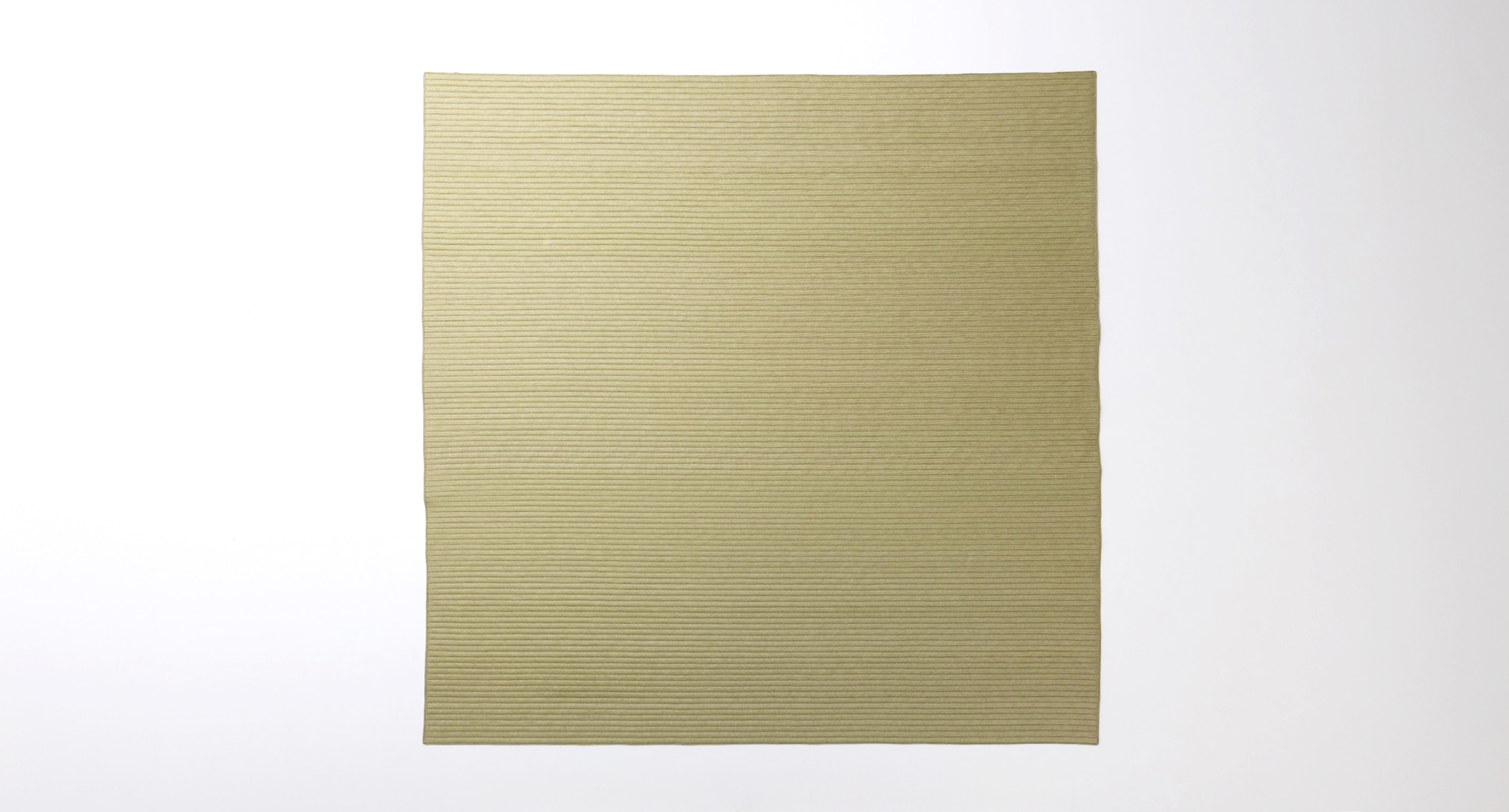 Il tappeto è rifinito alle estremità con una corda dello stesso colore di quella usata per ottenerne la superficie.