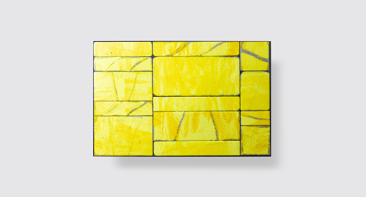 La decorazione del piano è realizzata a mano e rende unico ogni singolo pezzo. Il materiale, il particolare tipo di lavorazione e la tecnica usata per la produzione creano elementi dal disegno diverso, che a loro volta compongono piani differenti anche della stessa partita. L’irregolarità è la caratteristica distintiva di questa lavorazione.