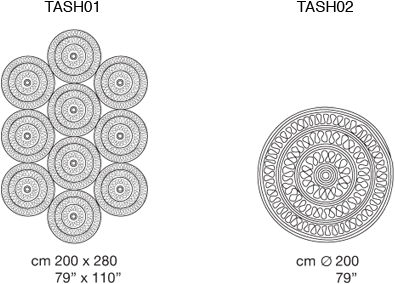 Il tappeto è costituito da un unico modulo tondo decorato.
