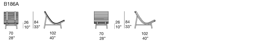 Seduta e schienale: bacchette di bambù legate con cinghie in juta e fissate alla struttura.