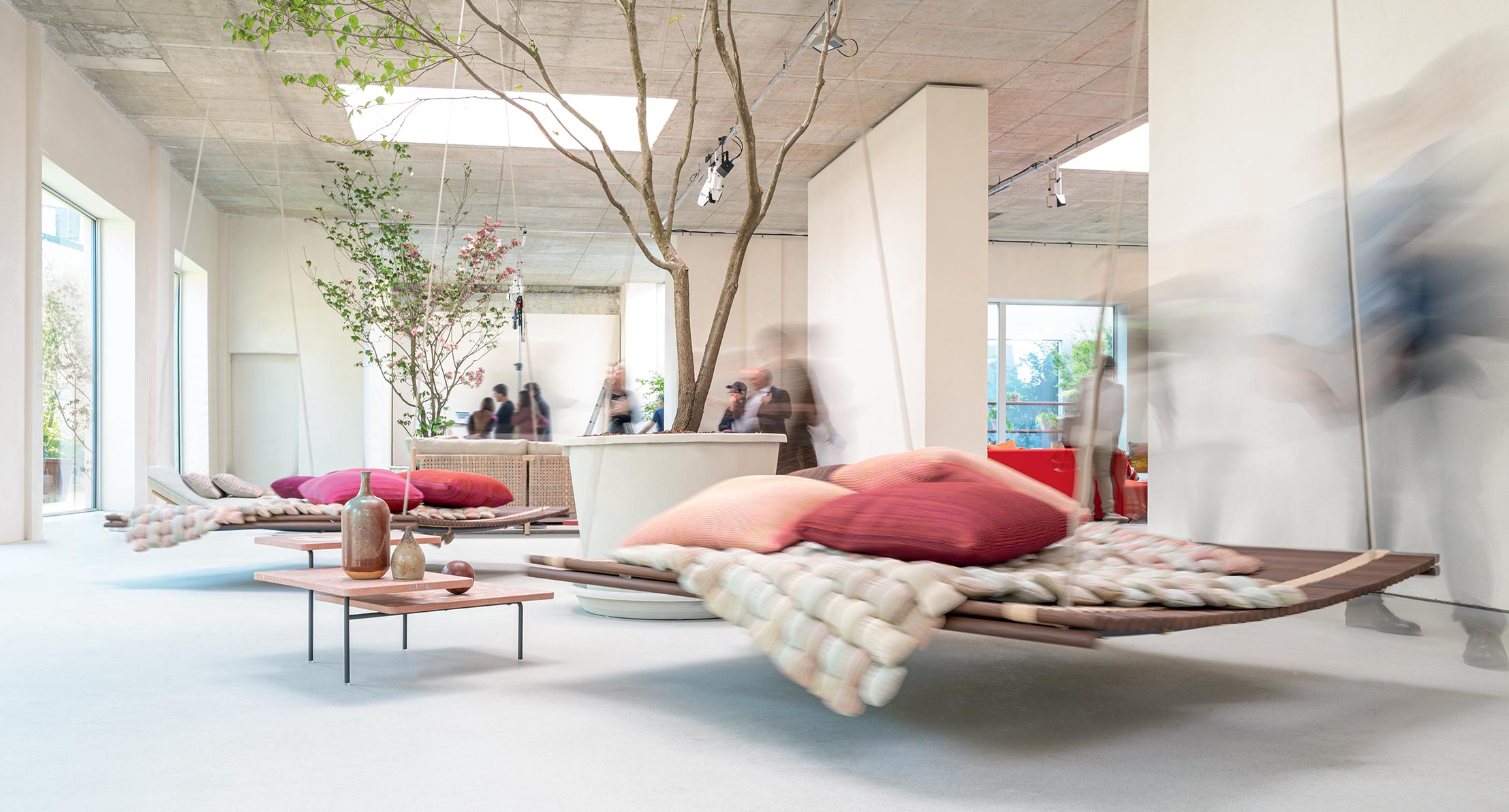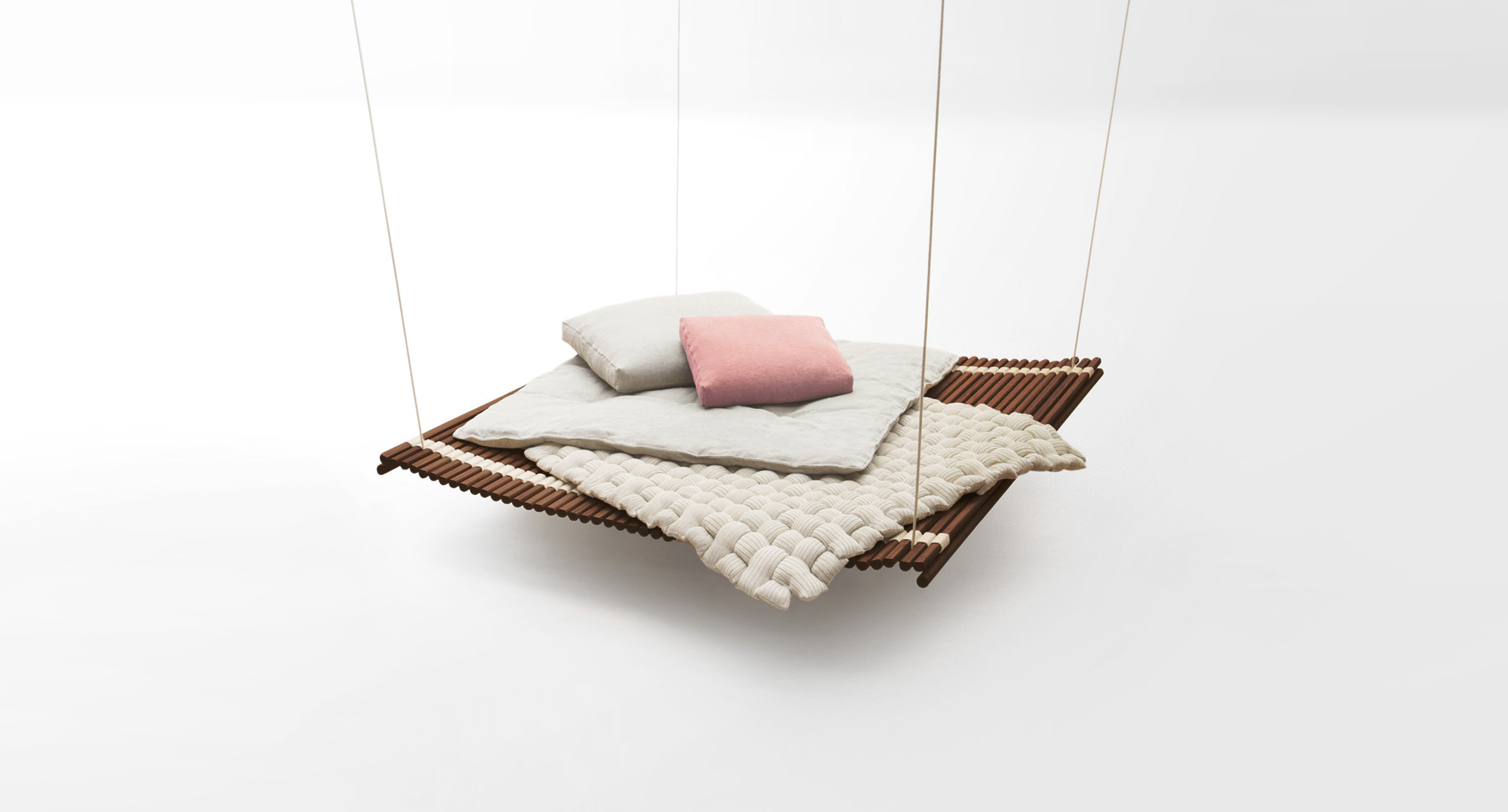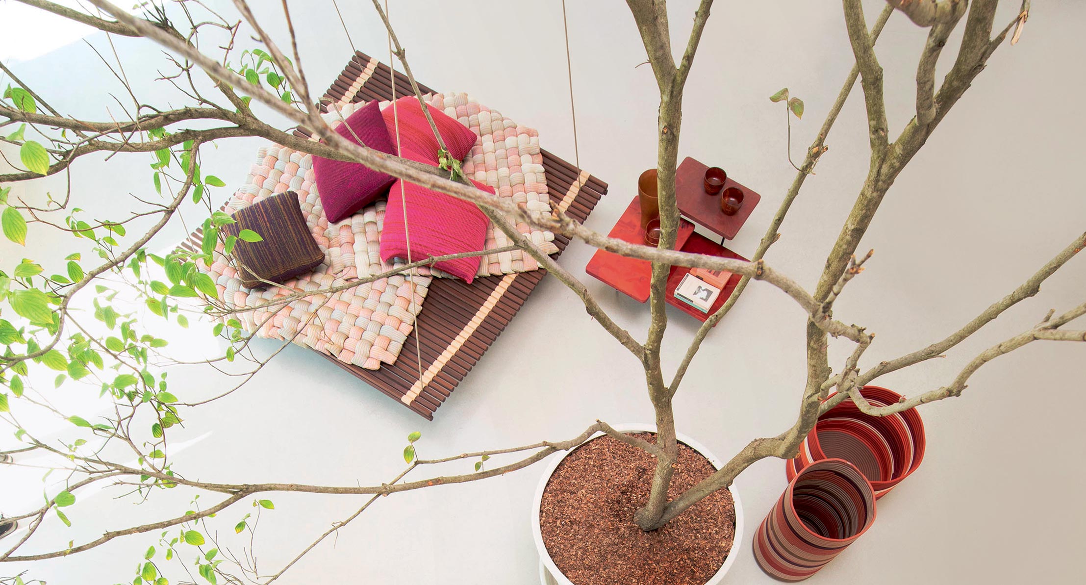 In alternativa al materassino rivestito in tessuto, è possibile usare uno o più Plump, un materassino realizzato intrecciando a mano elementi in maglia tubolare mélange Chain Outdoor.