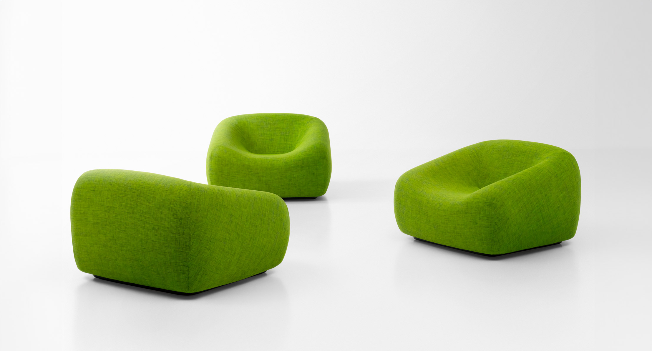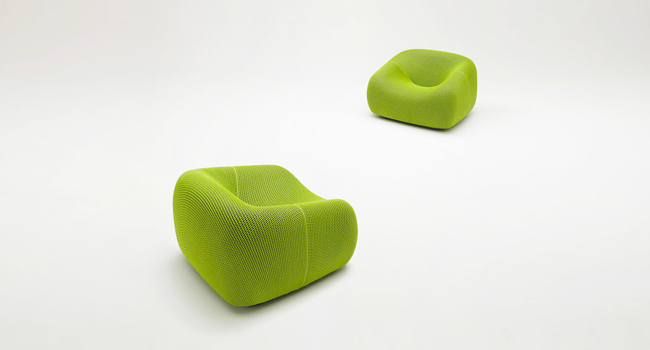 La serie Smile comprende anche un divano due posti e un pouf-contenitore.