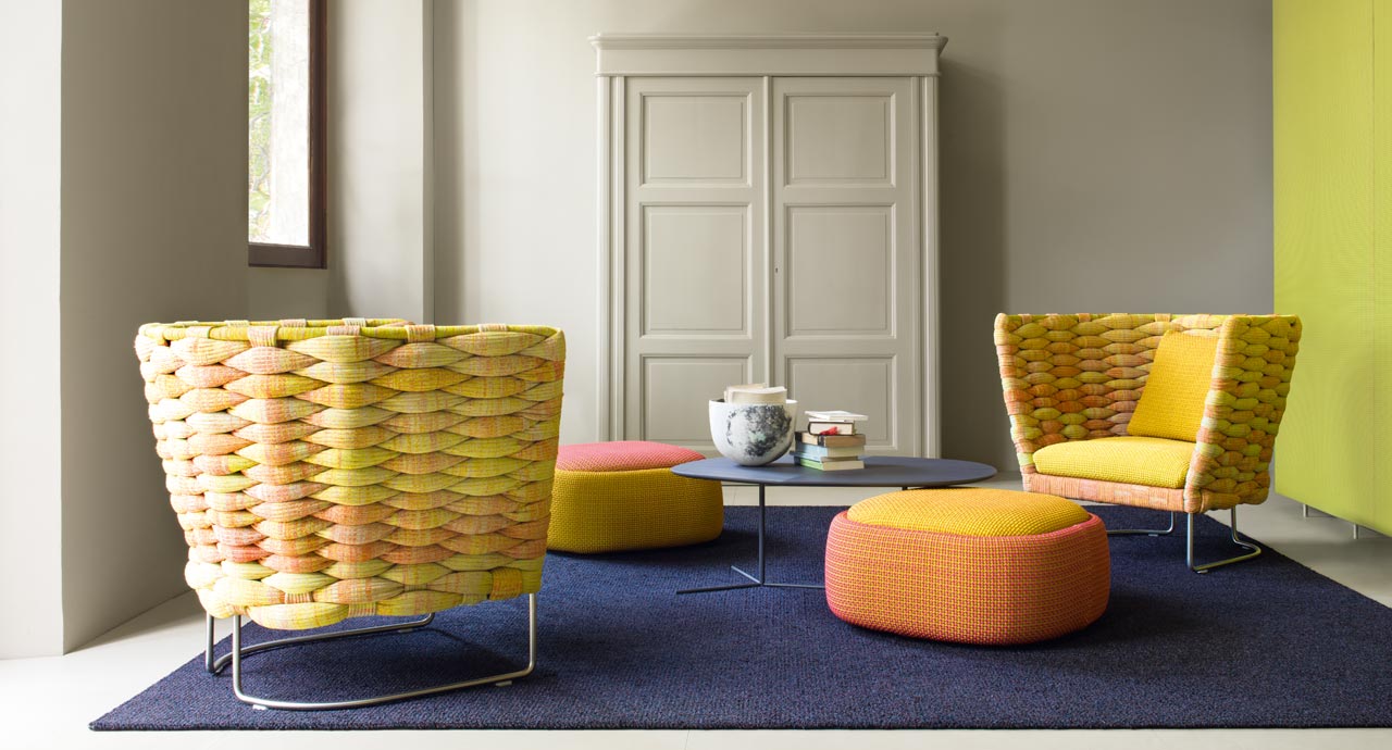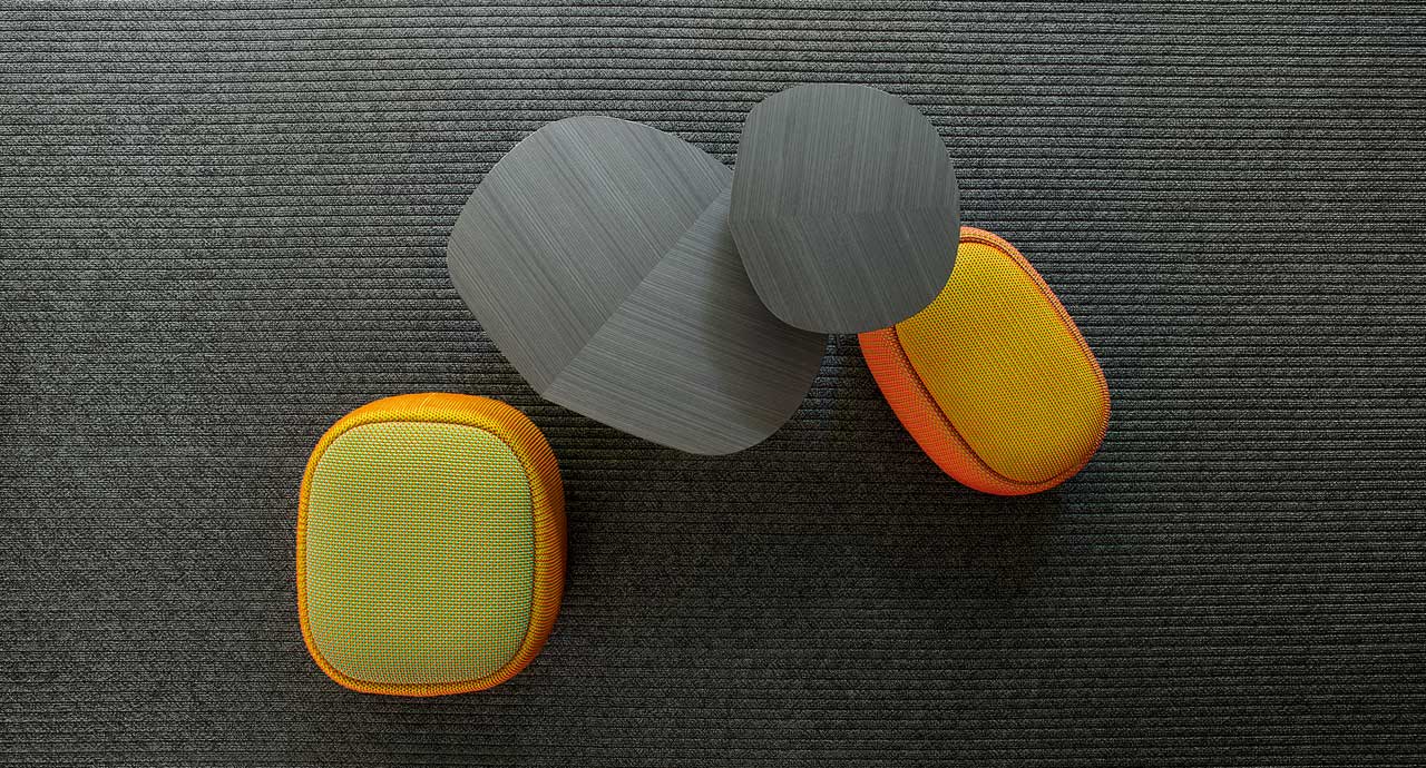 Note: il rivestimento del pouf Smile, qualora si scelgano i tessuti Blend o Dots, può essere realizzato interamente nello stesso tessuto o abbinando i due tessuti nello stesso prodotto.