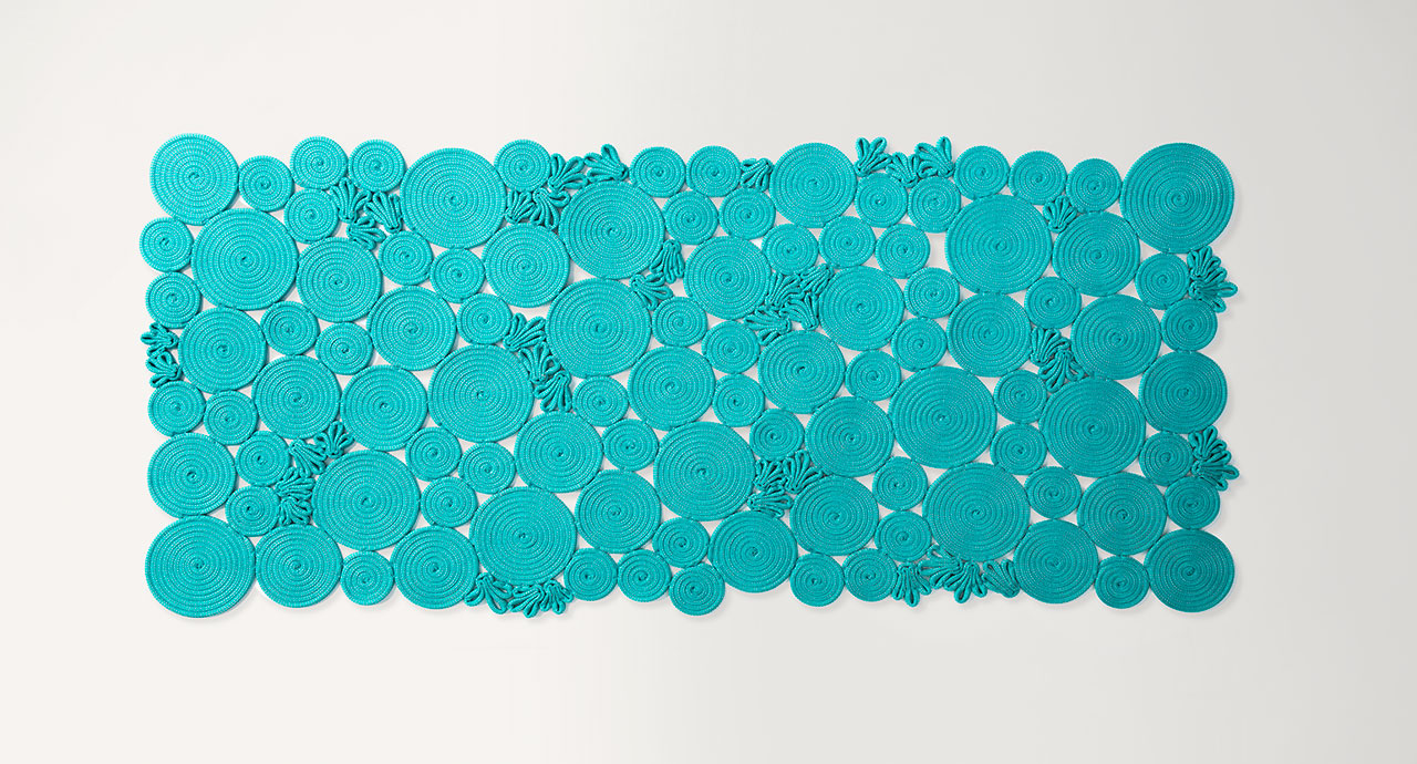 Spin off è un tappeto per esterni e interni realizzato dall’unione di elementi prodotti con una corda tinta unita o bicolore.