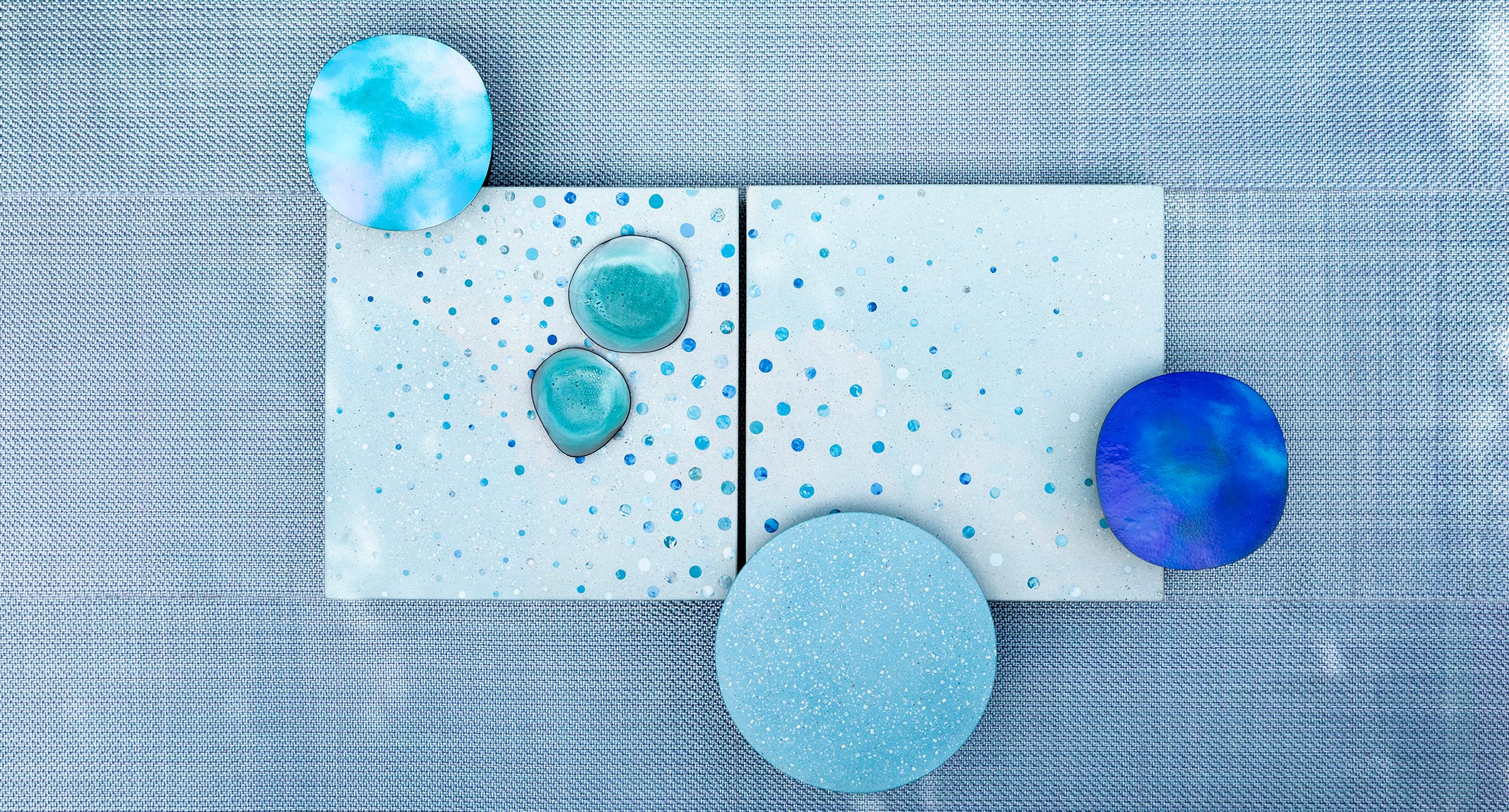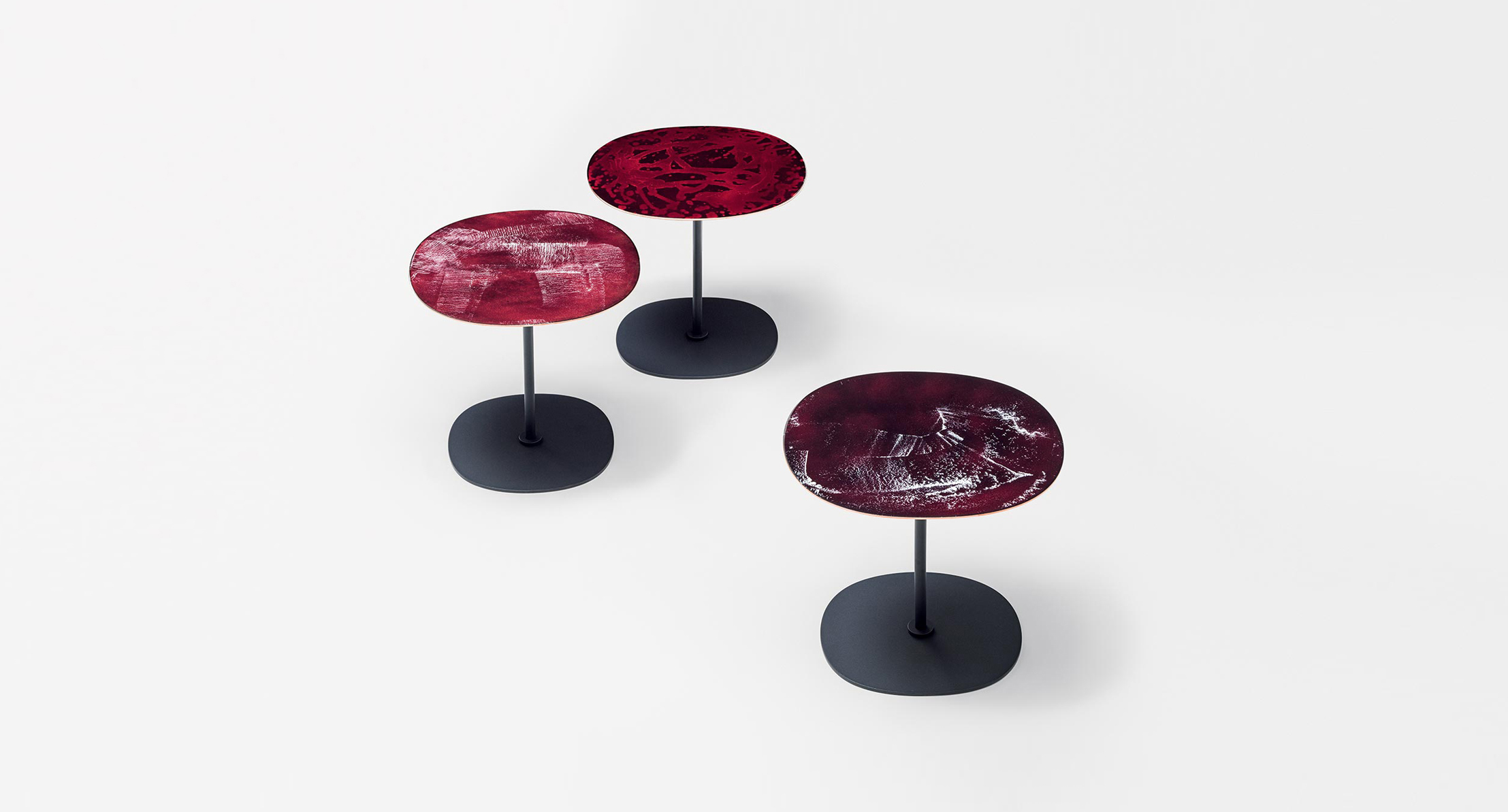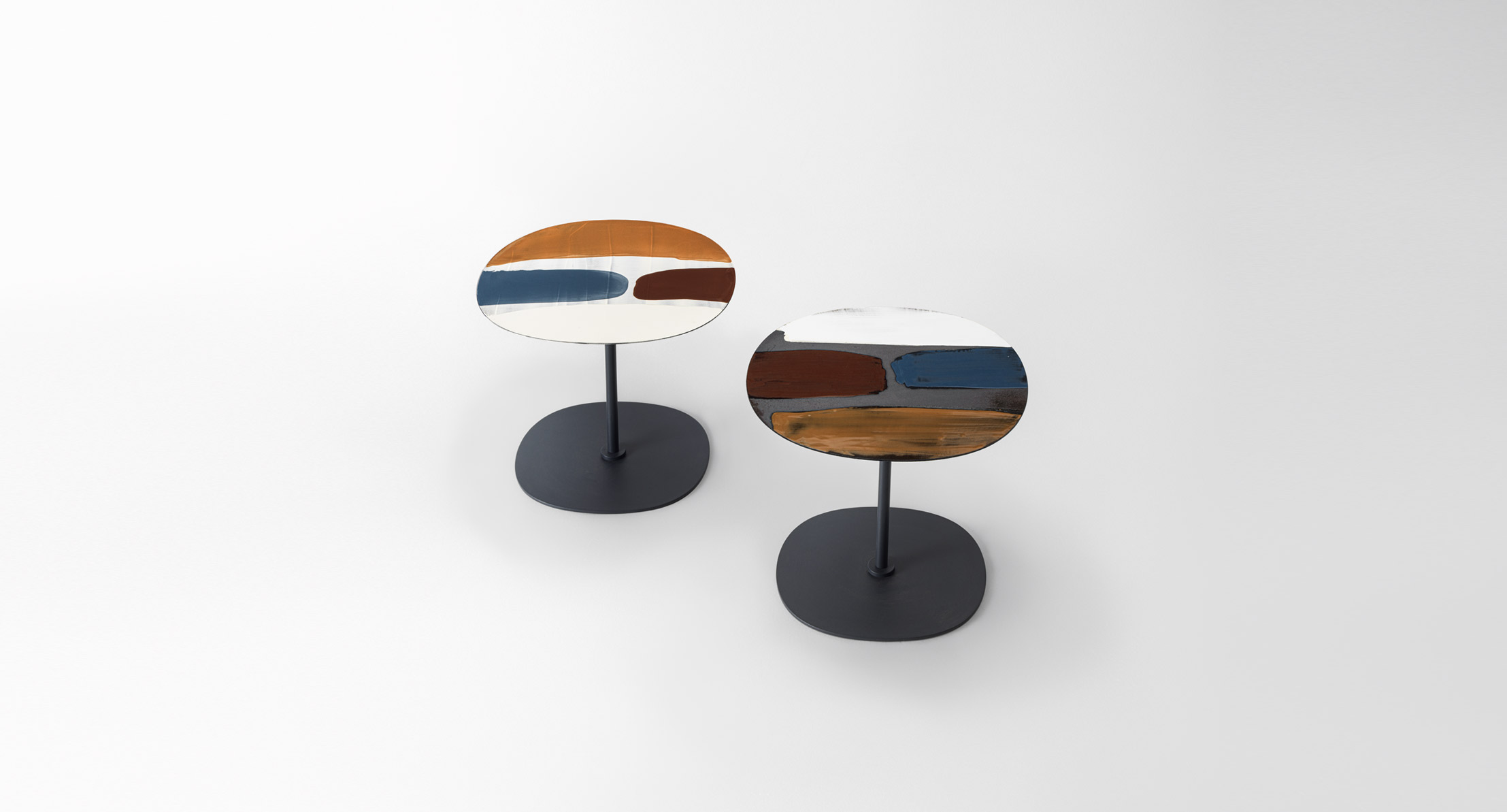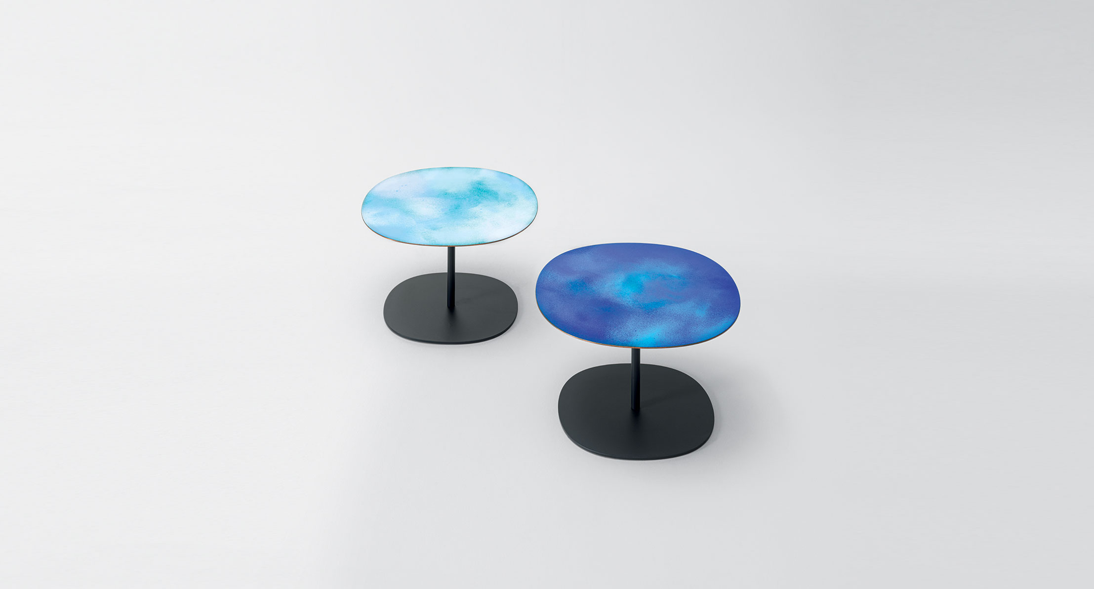 La smaltatura Esmal è ottenuta da Alessandra Malfatti con tecniche di produzione manuali che rendono ogni piano diverso dagli altri, unico ed esclusivo. L’irregolarità, sia dei colori sia delle superfici, è la loro caratteristica distintiva.