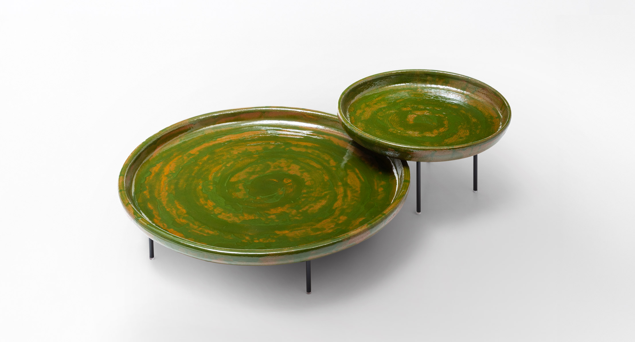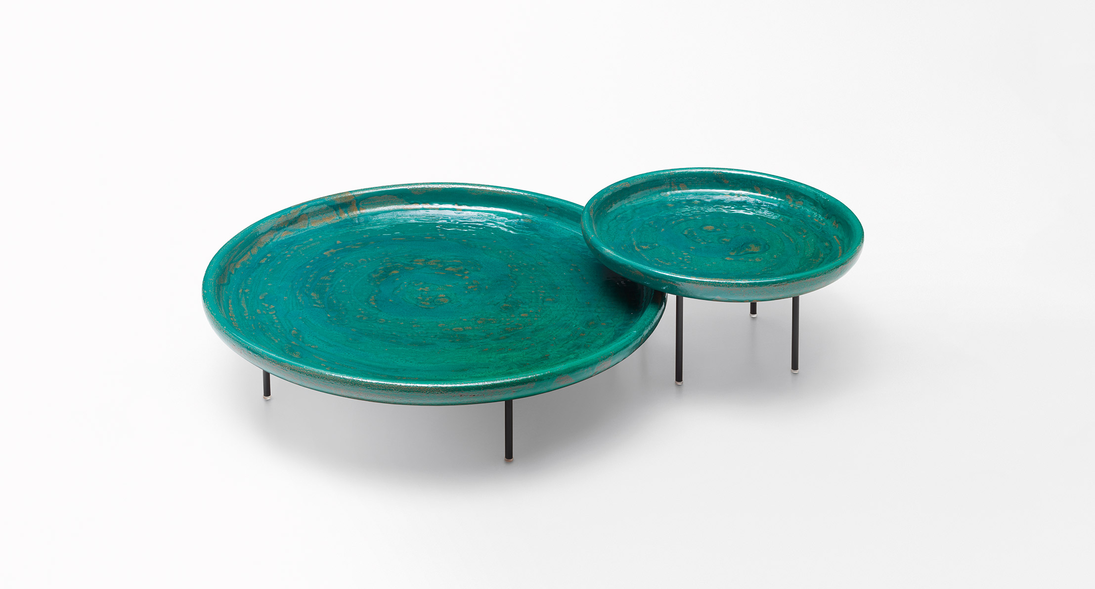 Il piano in ceramica è modellato e successivamente decorato a mano con colori esclusivi da Nicolò Morales.