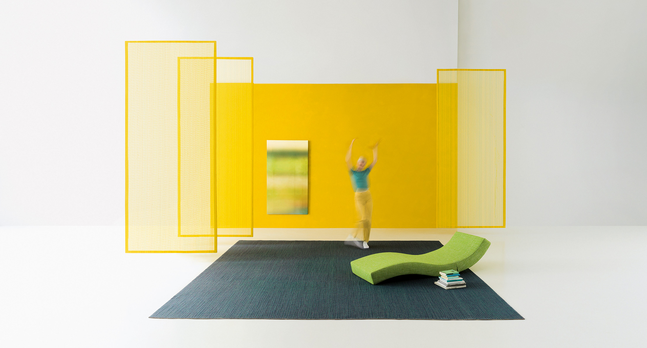 Tatami è un tappeto in feltro realizzato realizzato dall’unione di elementi cuciti a punto Zigzag.