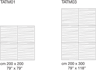 La superficie del tappeto è composta da elementi ricamati con punto Matelassé; ogni elemento misura cm 100 x 100.