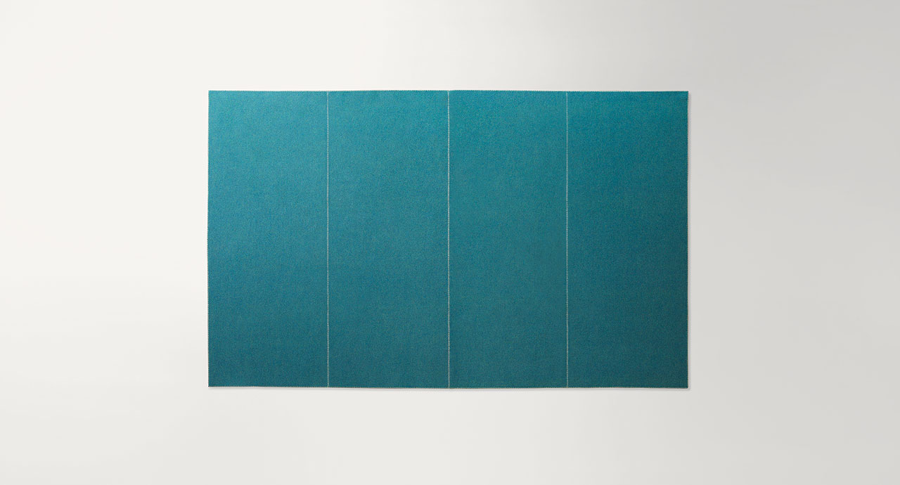 Unito è un tappeto in feltro che non ha decoro ma solo una bordatura perimetrale eseguita a punto Cavallo.