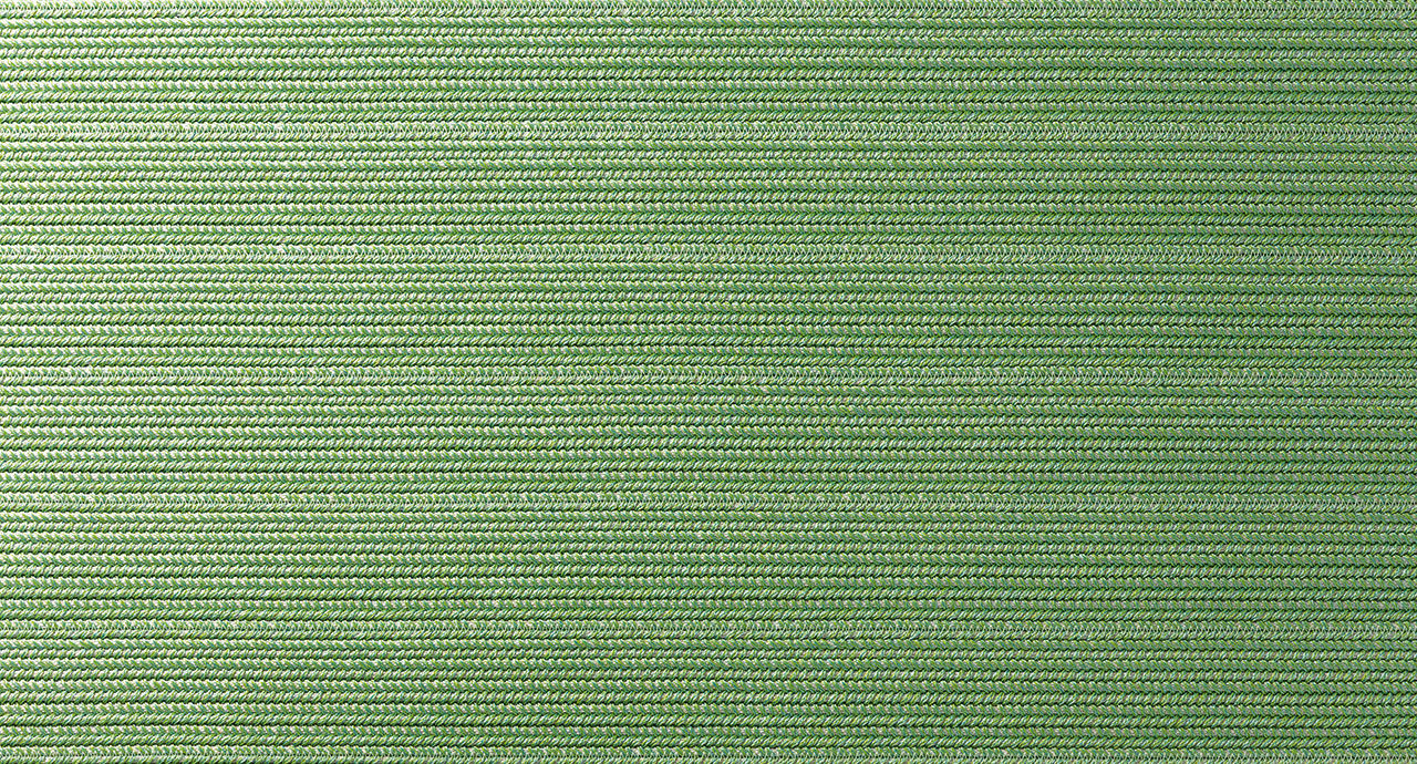 Tappeto modulare per esterni e per interni realizzato dall’unione di trecce mélange larghe circa cm 9, tessute in filato Twiggy e unite fra loro in senso longitudinale.